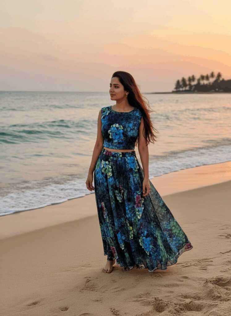 Fiona Fabric Cord Set by Gogi Collection: Dark Brown Flower Print Customised Ethnic Co-Ord Set with Comfort Fit for Festive Wear