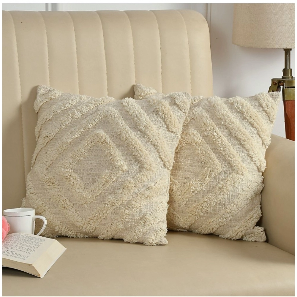Generic Cotton Tufted Cushion Pillow Cover 16×16 Inch Pack of 2 (Off White)