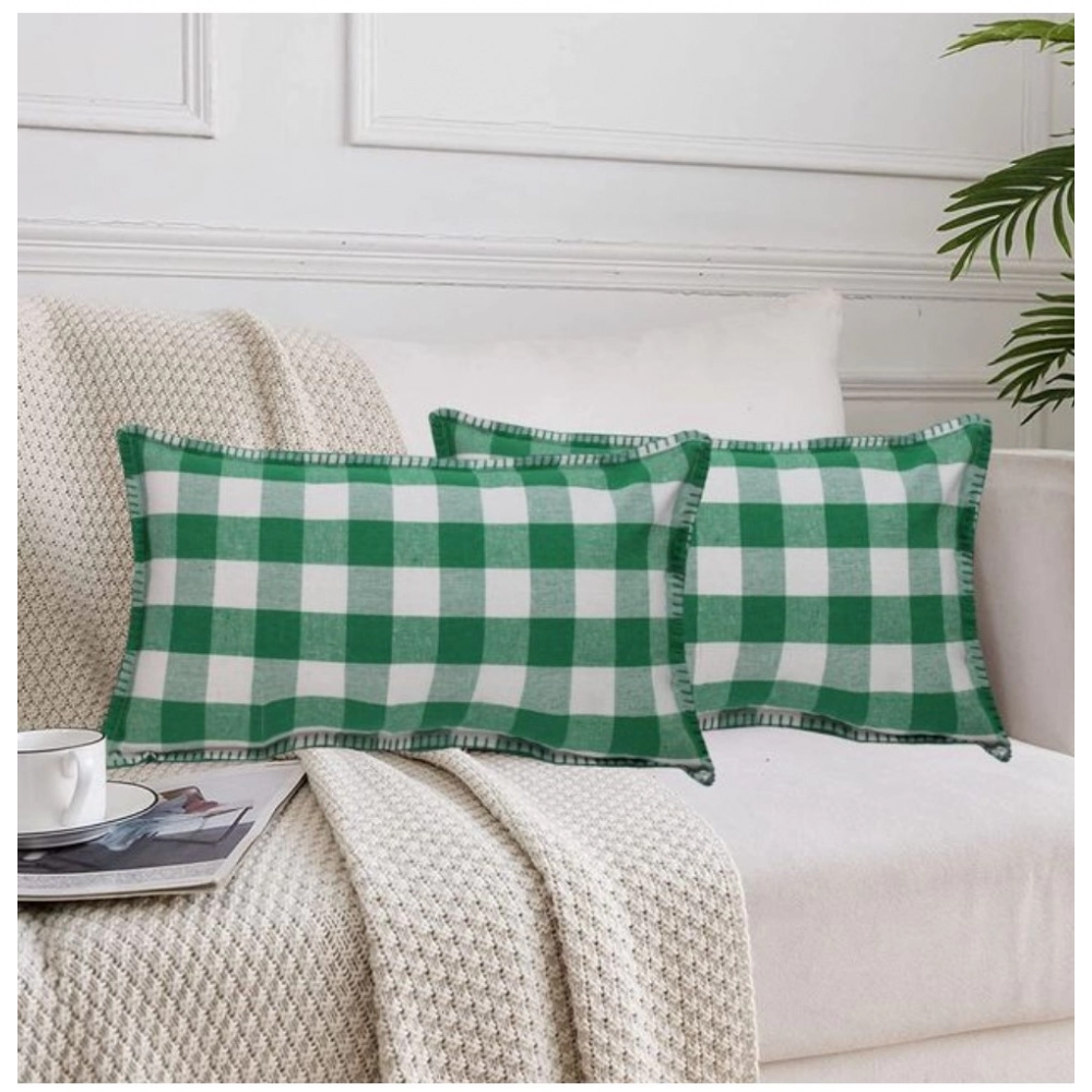 Generic Pack Of_2 Cotton Checkered Cushion Cover With Blanket Stitch (Green, Size:Â 12×20 In)