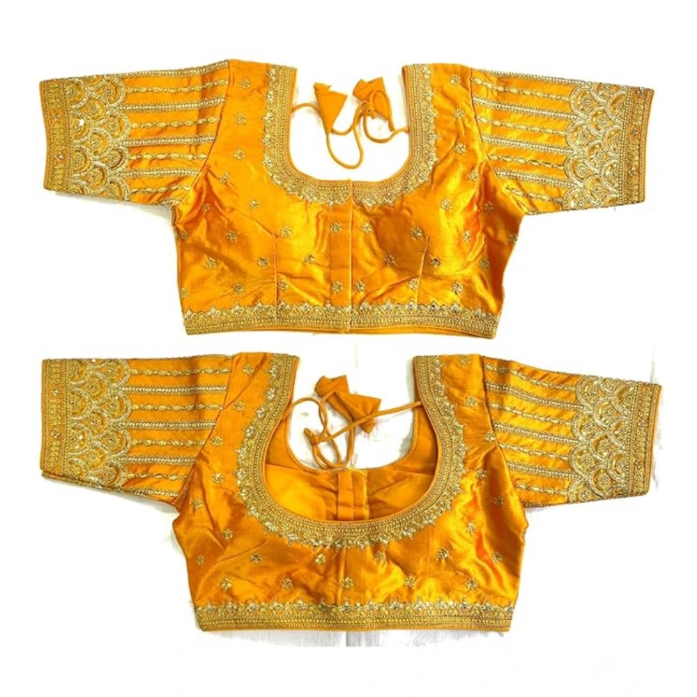 Generic Women’s Shining silk Sequance Round Neck Short Sleeve Readymade Blouse (Mustard, Free Size)