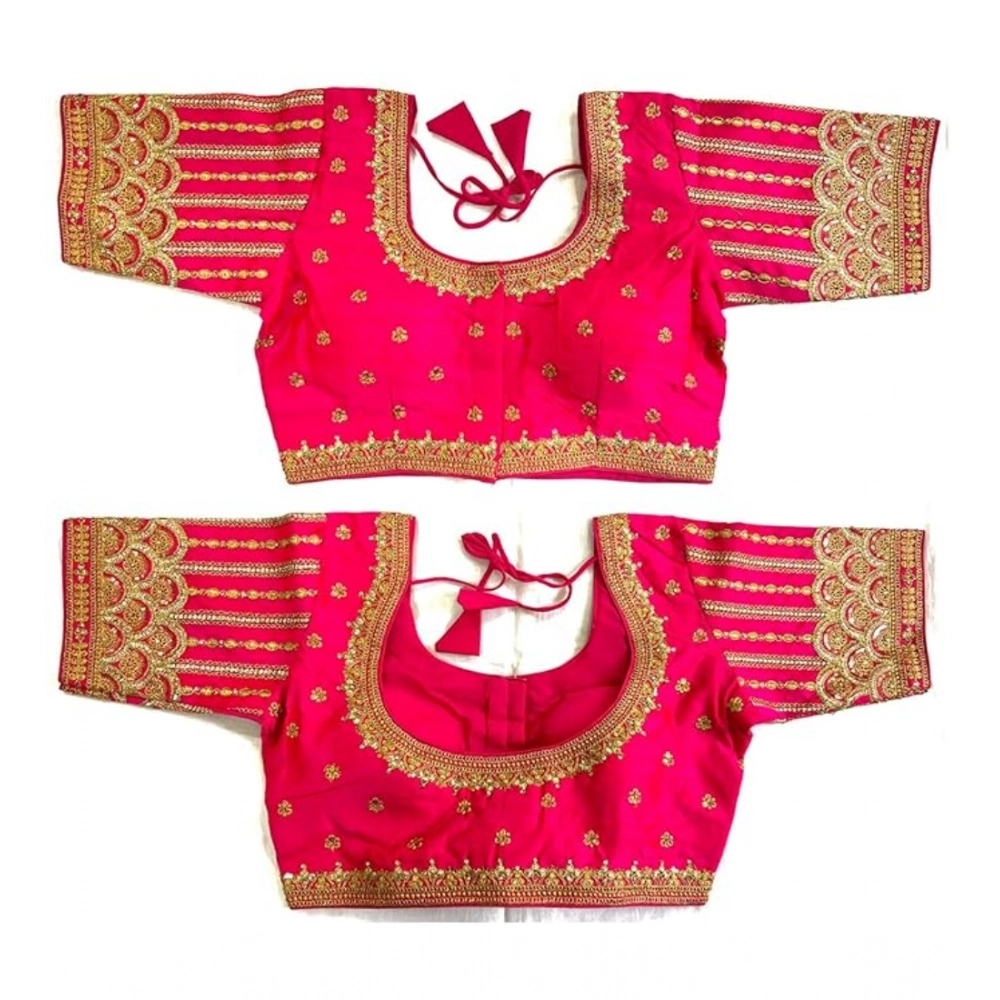 Generic Women’s Phantom Silk Embroidery Round Neck Short Sleeve Readymade Blouse (Pink, Free Size)