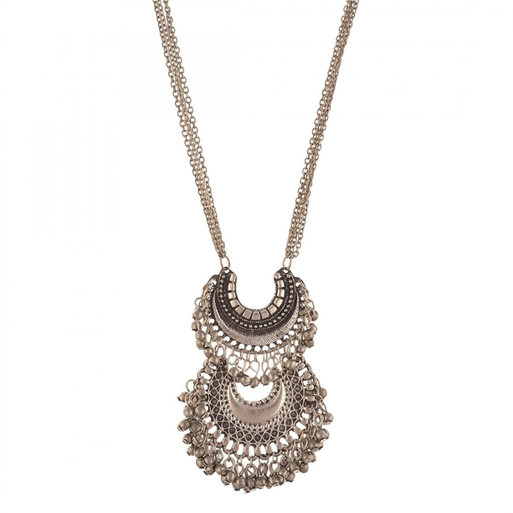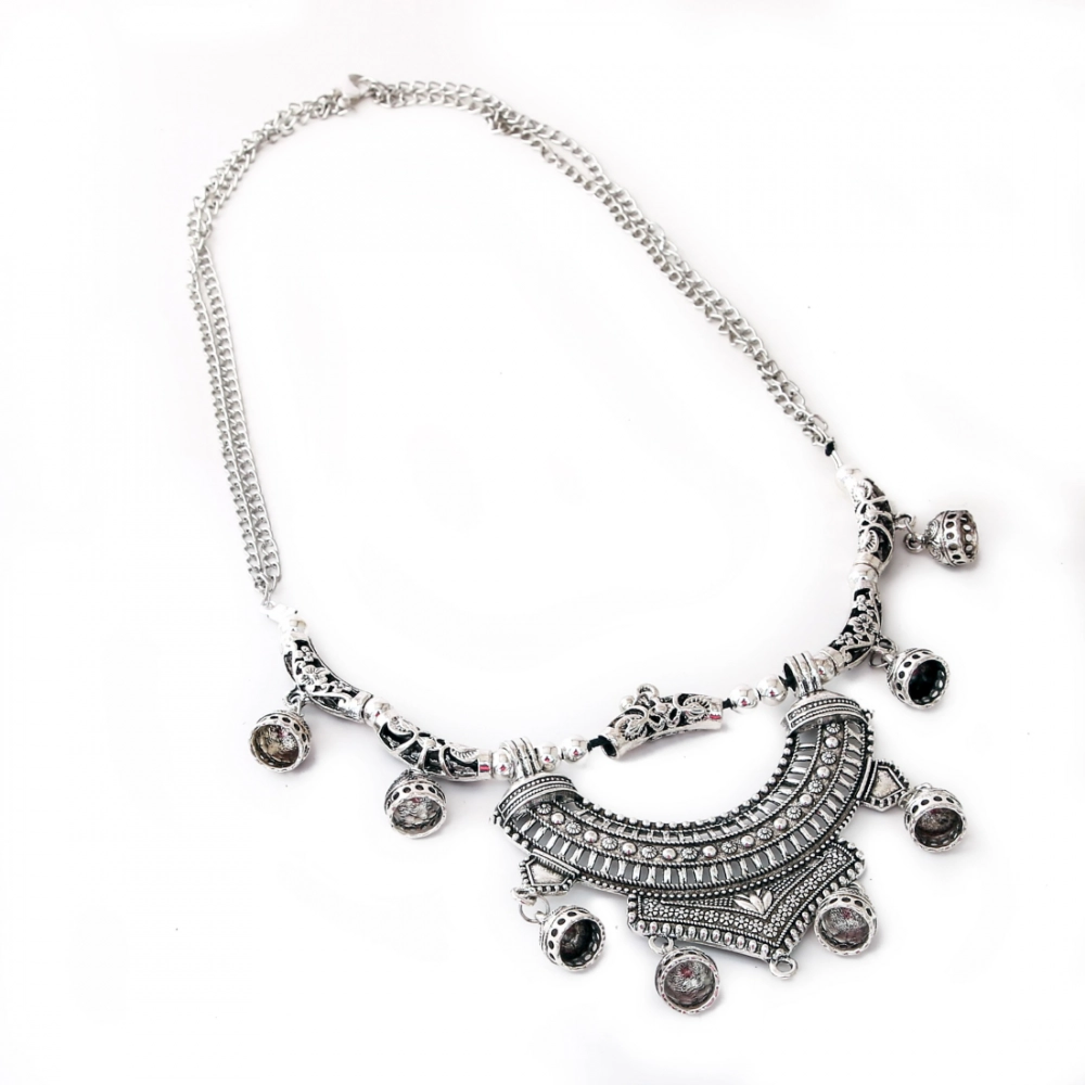 Afghani Dual Tone Designer Turkish Style Vintage Silver Oxidised Necklace