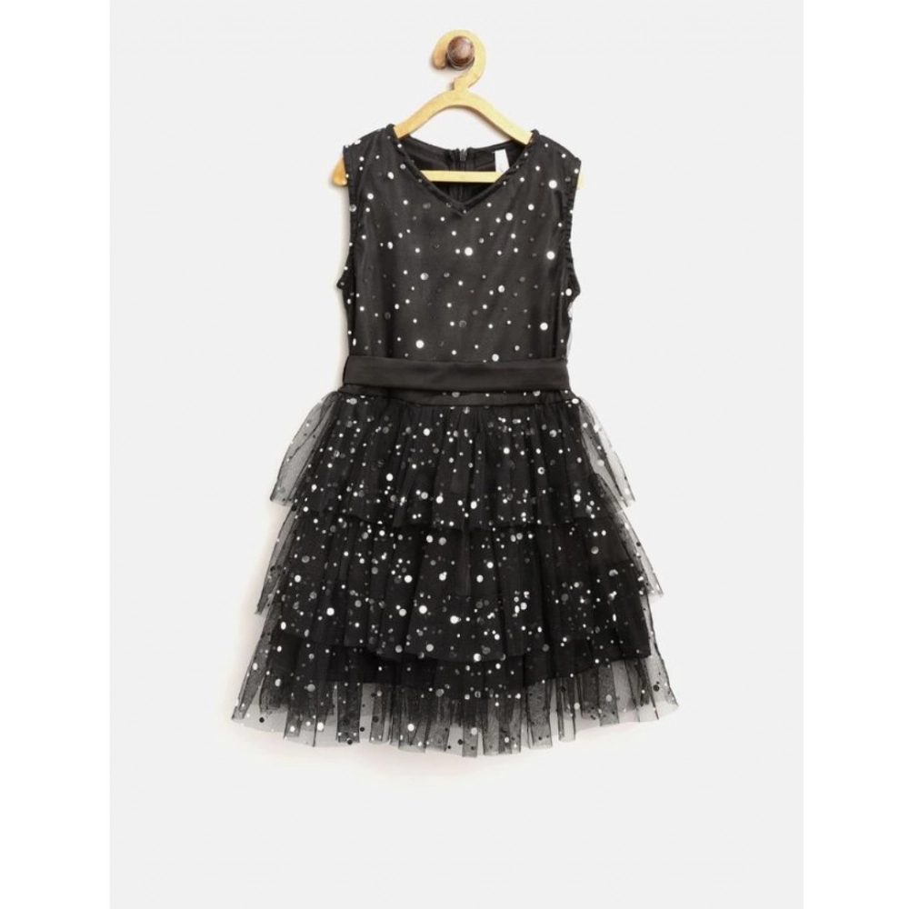 Generic Girl’s Net Embellished Sleeveless V-Neck Dress (Black)