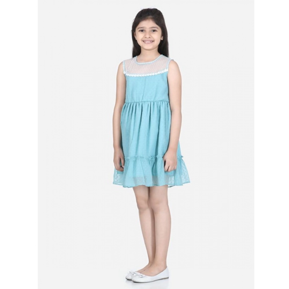 Generic Girl’s Polyester Crepe Embellished Sleeveless Round Neck Dress (Multicolor)