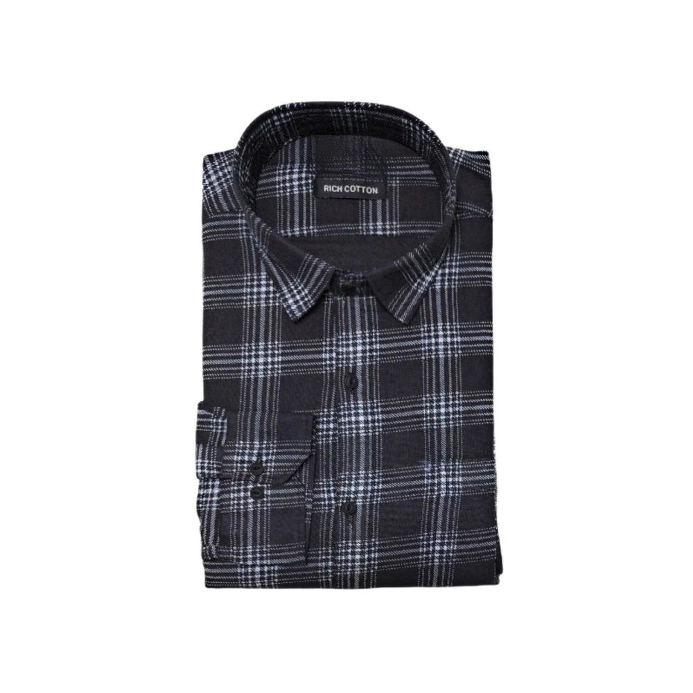 Generic Men’s Cotton Lycra Full Sleeve Checked Casual Shirt (Black)