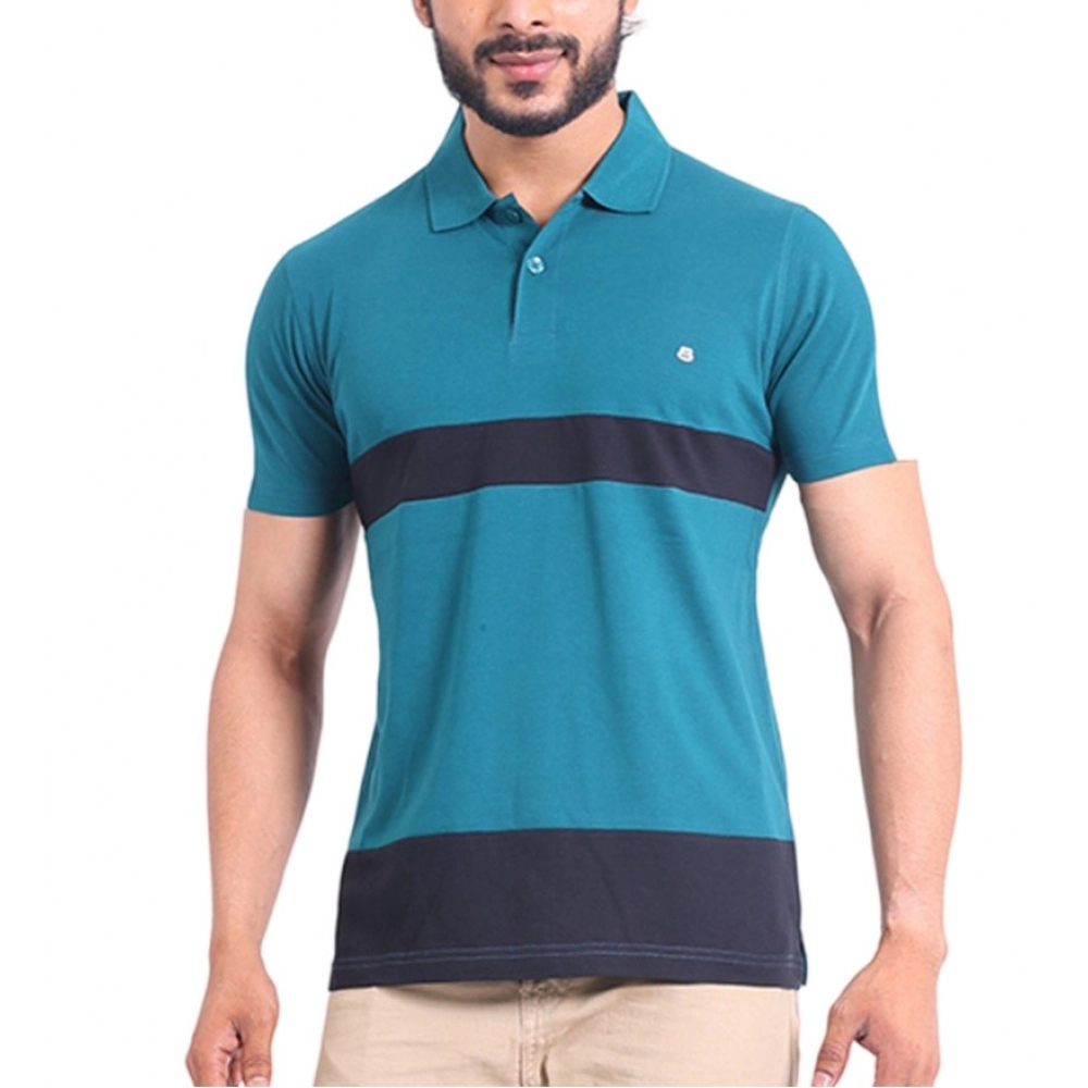 Generic Men’s Casual Cotton Printed Polo Neck Half Sleeve T-Shirt (Green)