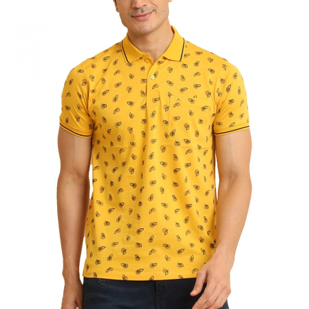 Generic Men’s Casual Cotton Printed Polo Neck Half Sleeve T-Shirt (Mustard)