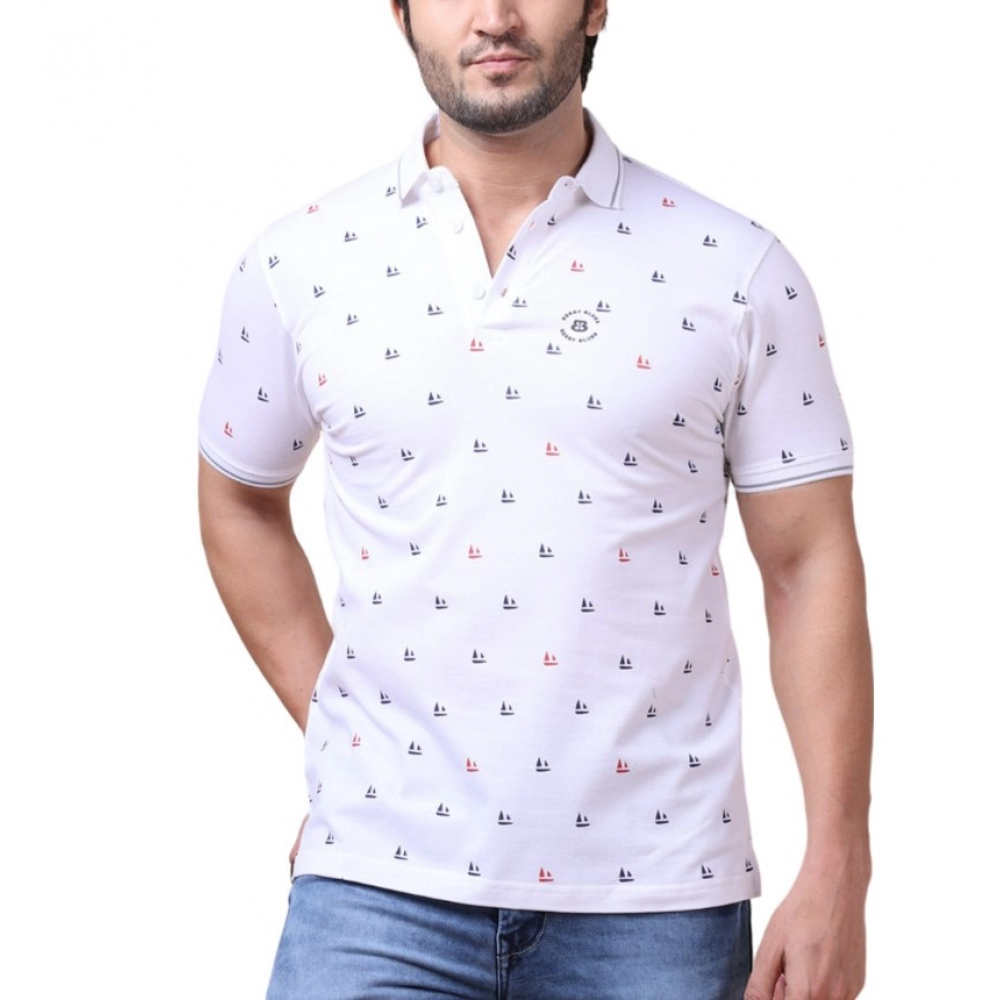 Generic Men’s Casual Cotton Printed Polo Neck Half Sleeve T-Shirt (White)