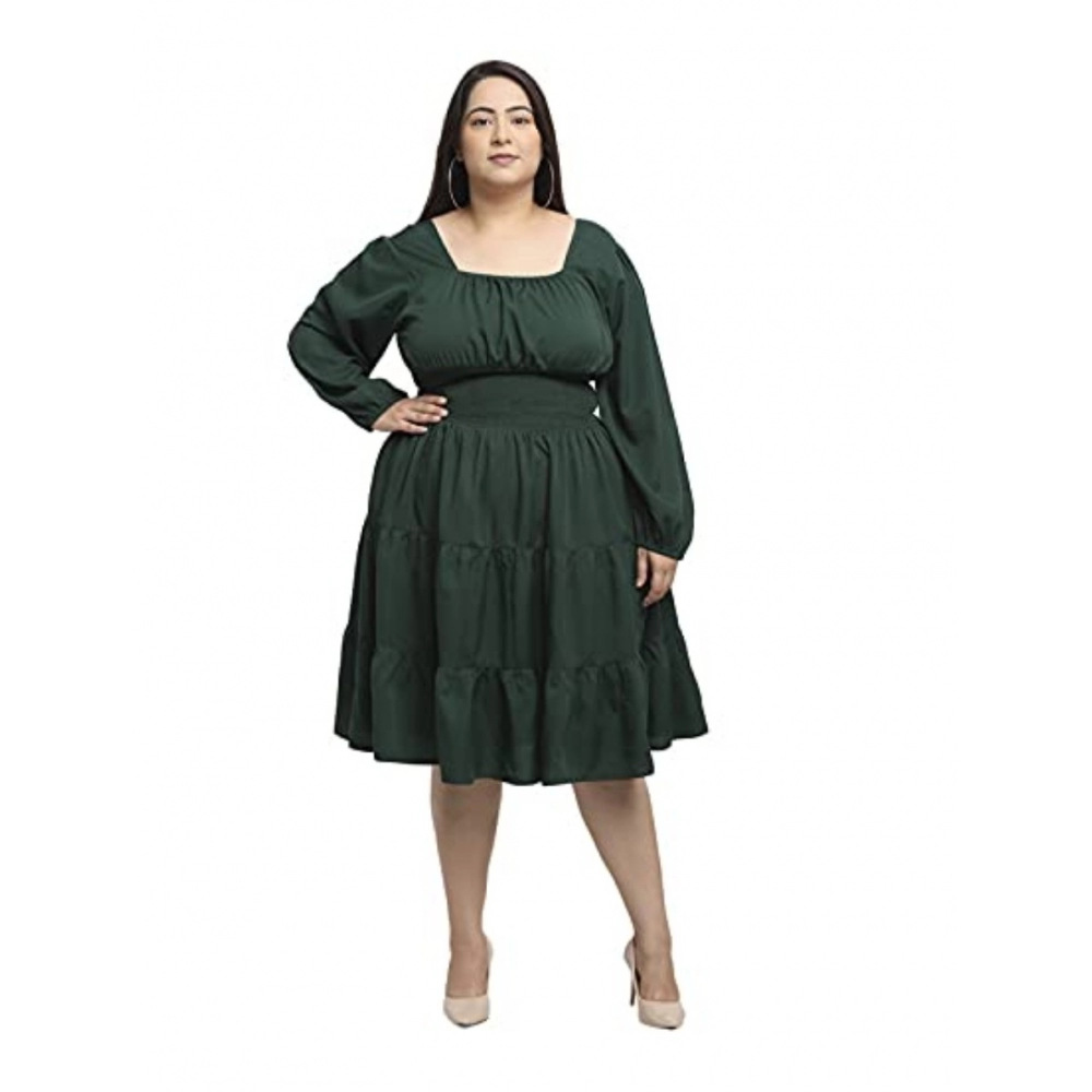 Generic Women’s Crepe Solid Knee Length Fit and Flare Dress (Bottle Green)