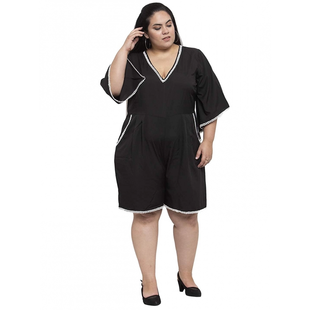 Generic Women’s Crepe Solid Knee Length Fit and Flare Dress (Black)