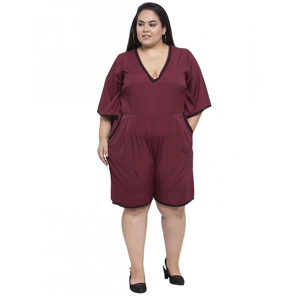 Generic Women’s Crepe Solid Full Length Fit and Flare Dress (Maroon)