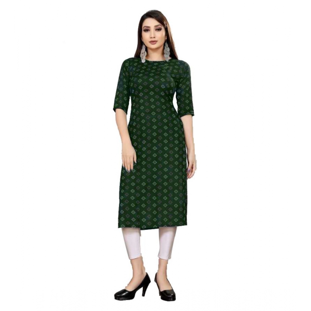 Generic Women’s Casual Full Sleeve Viscose Rayon Printed Kurti (Dark Green)