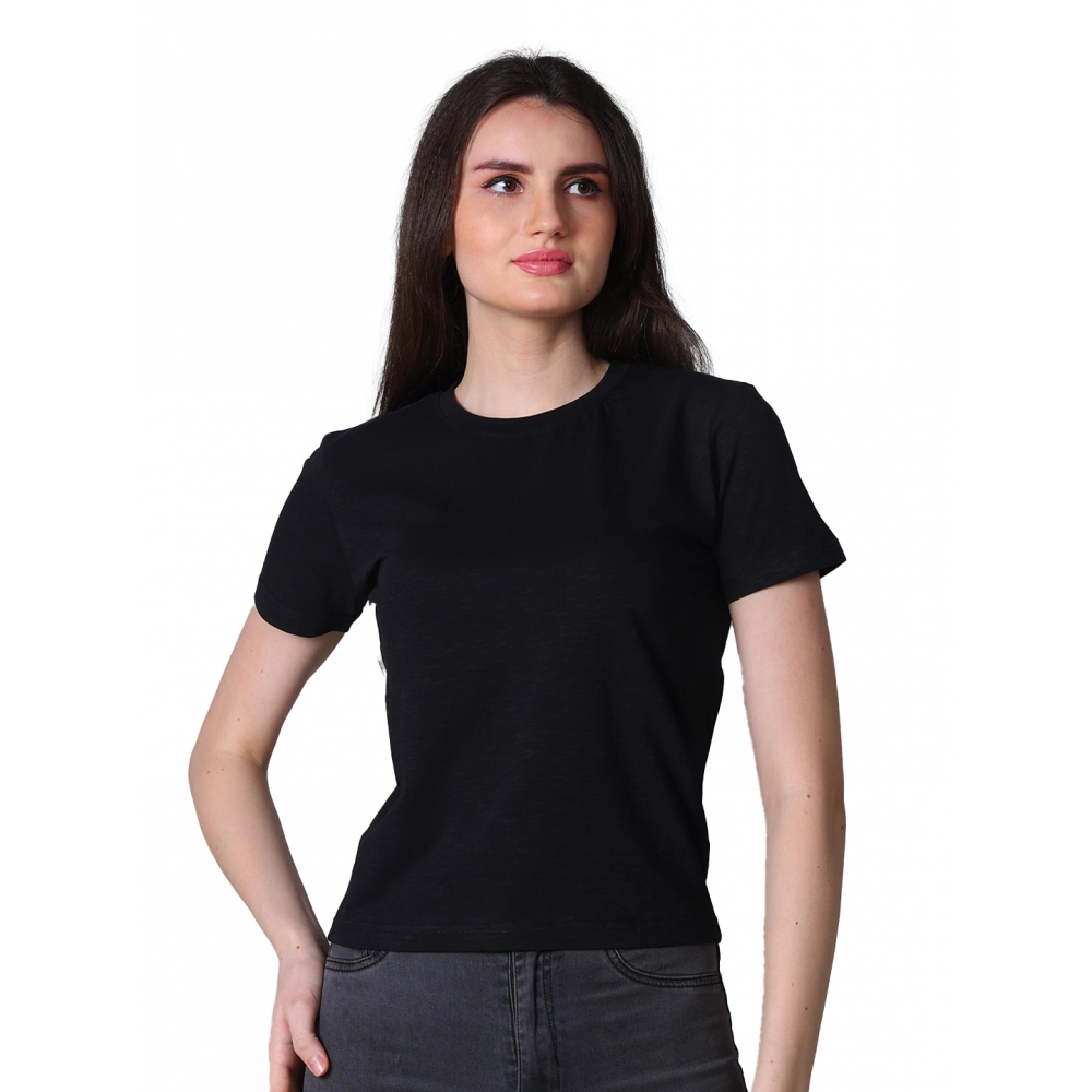 Generic Women’s Cotton Solid Closure Neck Half Sleeve T-Shirt (Black)
