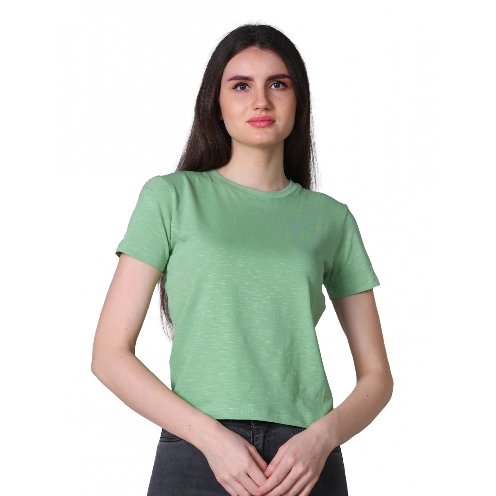 Generic Women’s Cotton Solid Closure Neck Half Sleeve T-Shirt (Mint-Green)