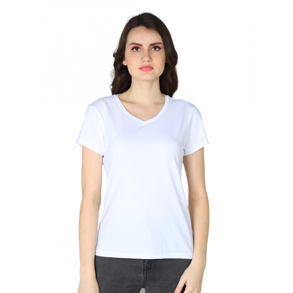 Generic Women’s Cotton Blended Solid U-Neck Half Sleeve T-Shirt (White)