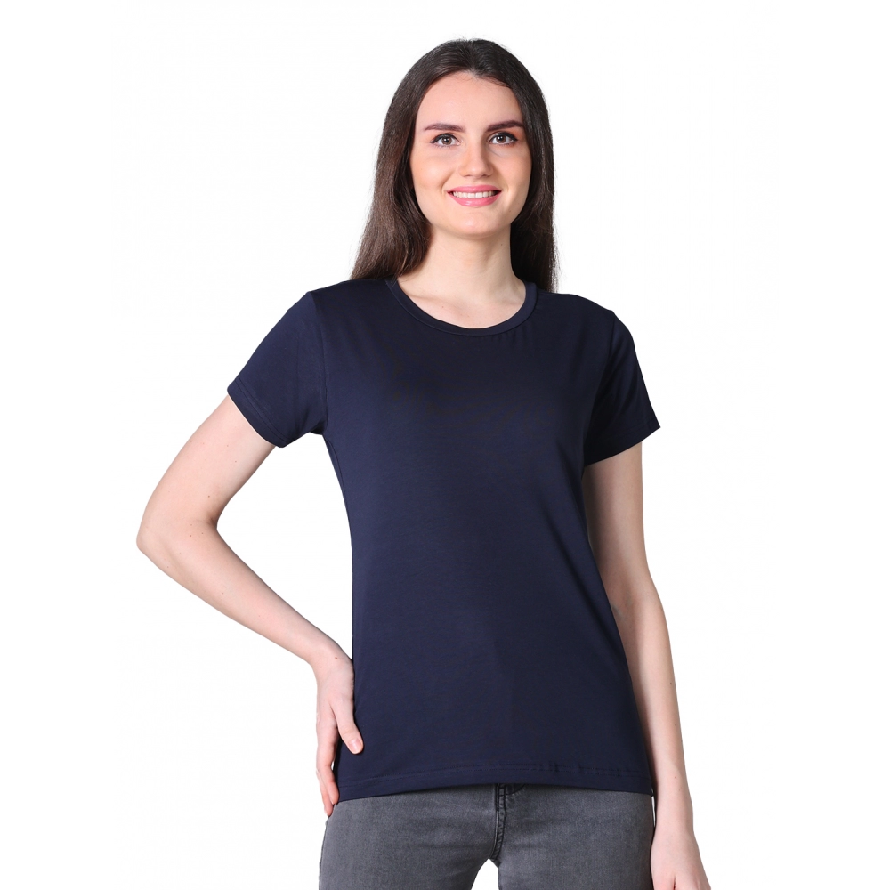 Generic Women’s Cotton Blended Solid U-Neck Half Sleeve T-Shirt (Navy)
