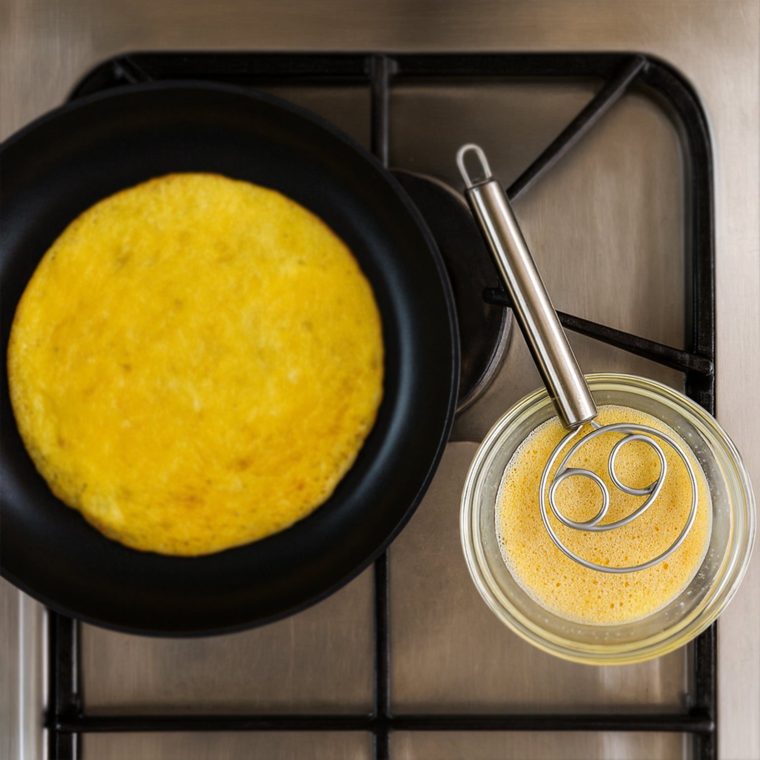 Whip, blend, and aerate faster with this 2-piece spiral hand whisk set. The open-coil head glides through ingredients to incorporate air quickly while preventing lumps, making it perfect for eggs, batters, sauces, soups, and beverages. A balanced handle offers a steady, comfortable grip for daily kitchen use. After rinsing, hang each whisk on the included adhesive hooks to keep your countertop clear and utensils within easy reach. Durable and easy to clean, this set is a practical upgrade for home cooks who want smooth results without the noise or hassle of electric appliances.