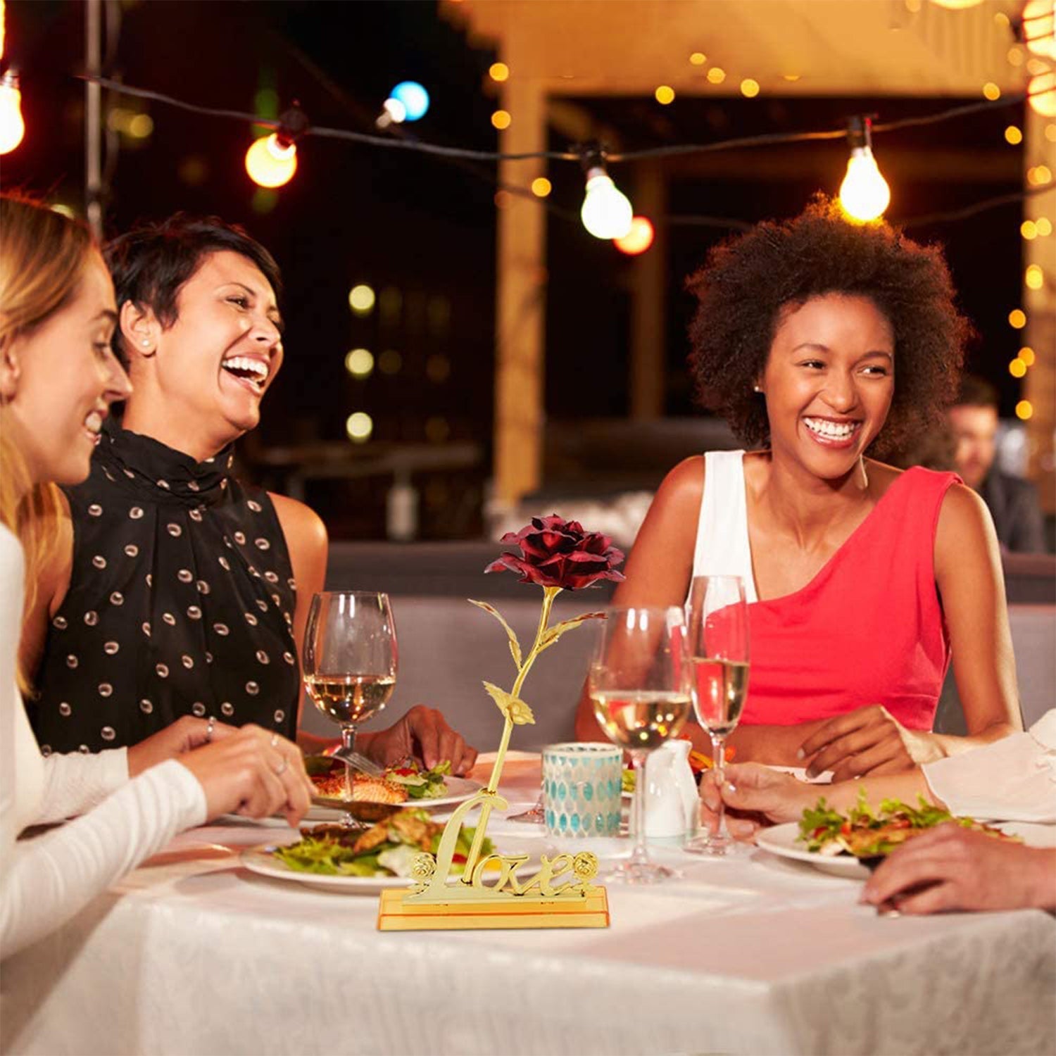 - 24k Gold Rose: The flowers and leaves are made of gold foil, it is lightweight but gorgeous, the flower stems are made of polyethylene and the LOVE stand is made of plastic. All items are packaged in a gift box with a gift bag.