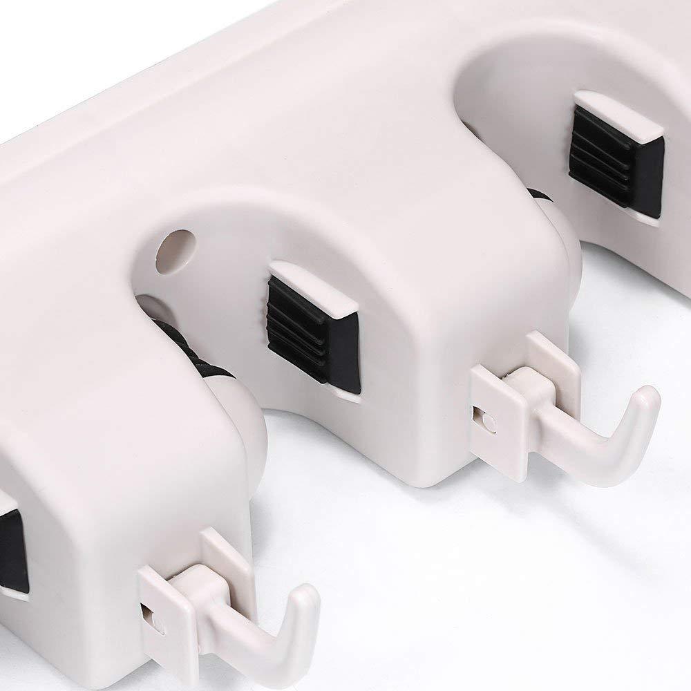 - Strong and sturdy. The mop and broom holder organizer is made of tough ABS+PVC+Acrylic, which can hold up to 11 lbs(5 kg) of weight (each).