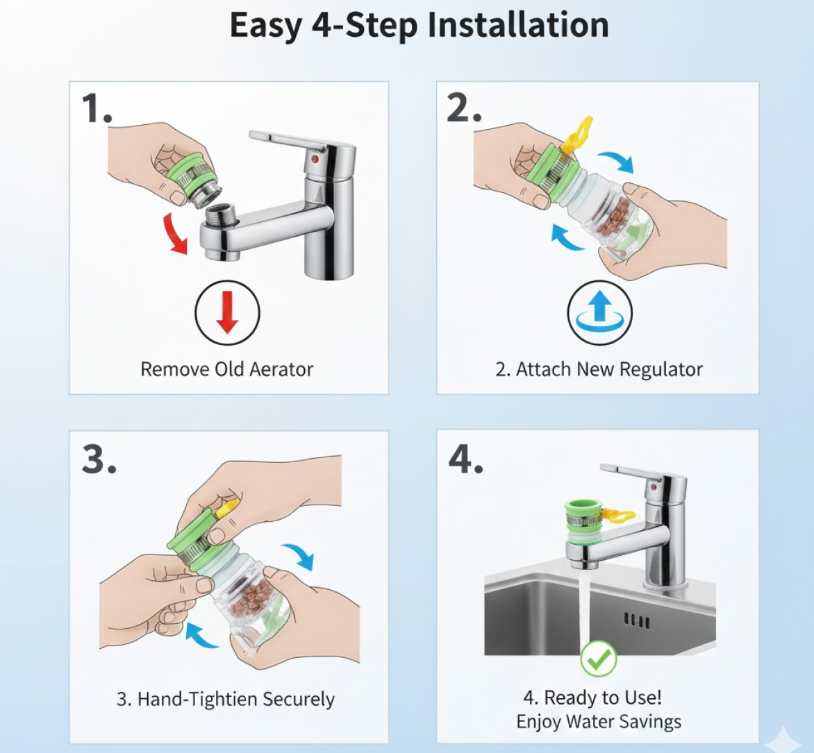 Adjustable 360-Degree Rotation Water Saving Faucet Water Valve Splash Regulator Water Filter Tap