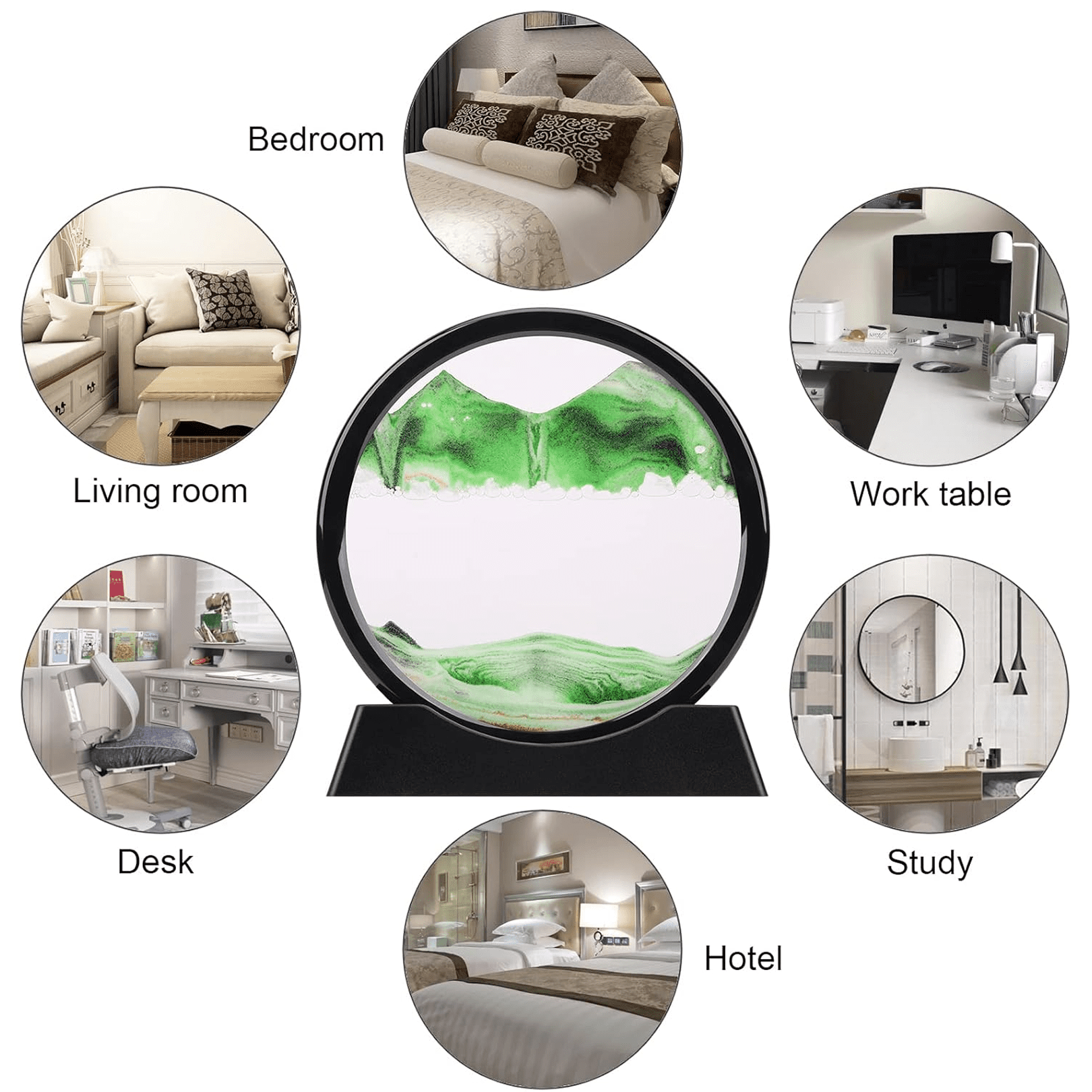 - Home and Office Decor-The moving sand picture is a wonderful artwork, exactly what you need to decorate your home or office! Sand art kits are placed where you like, so elegance and beautiful. Please try to put down all the electronic products and watch the sand falling to form a new scene. You will release stress and have an unexpectedly good mood.