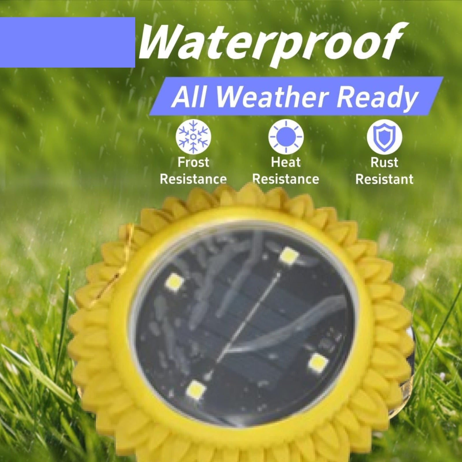Discover our 4-pack sunflower solar ground LED lights. Perfect for outdoor lighting, easy to install, waterproof, and solar-charged for long working hours.