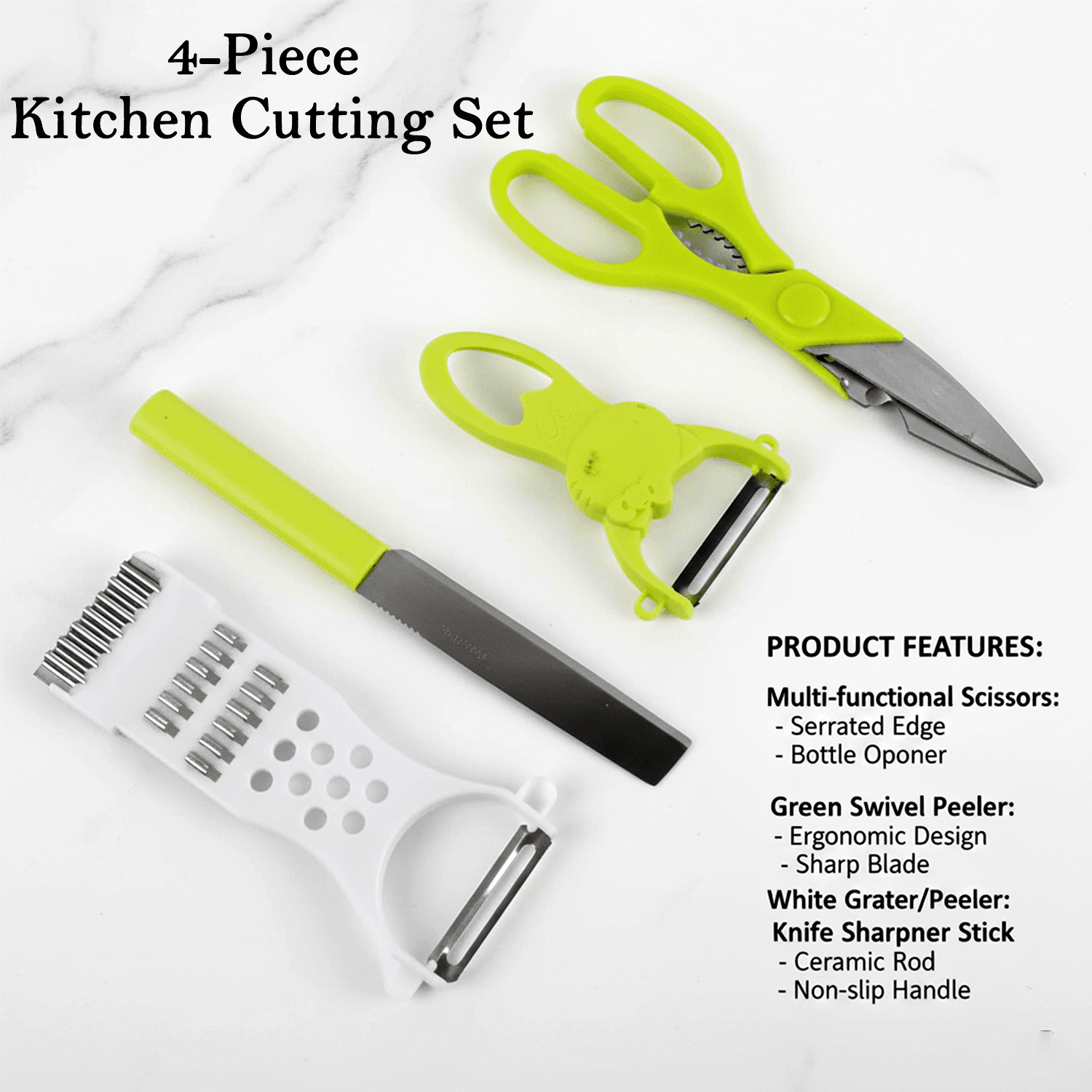 4-Piece Kitchen Cutting Set: Scissors, Peeler, Grater / Slicer, and Knife
