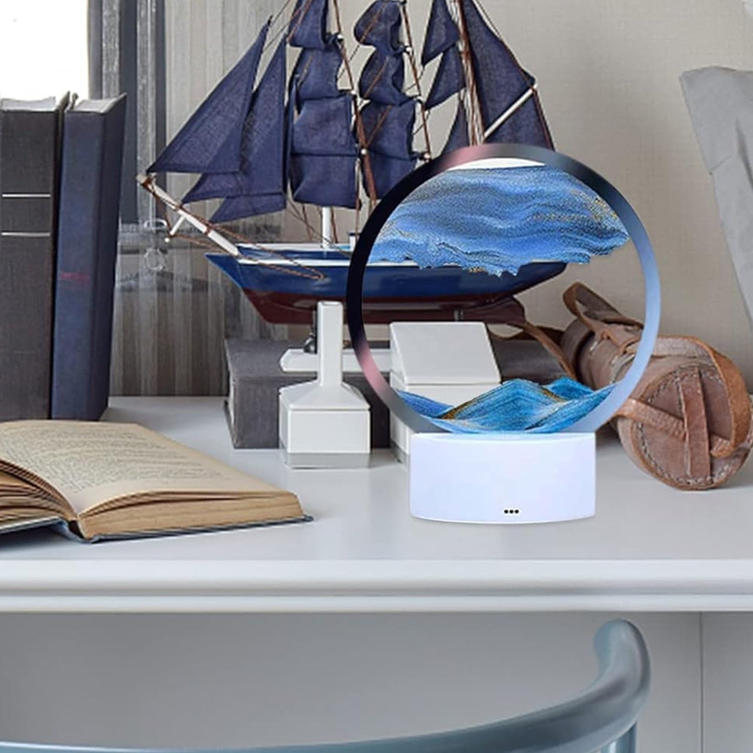 5 Color Light Moving Sand Art Picture Round Glass 3D Deep Sea Sands cape in Motion Display Flowing Sand Frame, Children’s Large Desktop Art Toys, Home & Office Desktop Decorations, sandscape (1 Pc)