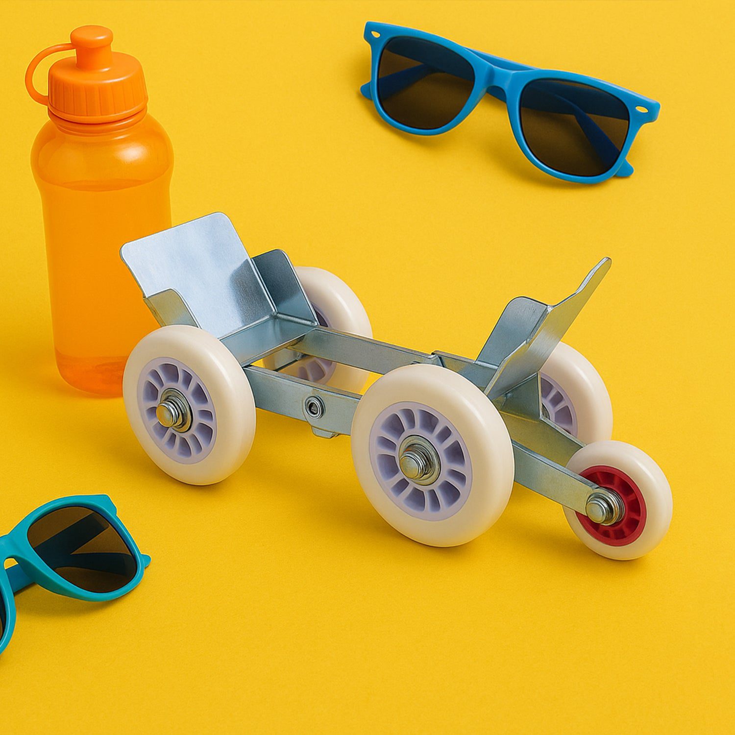Five-Wheel Emergency Bike Wheel Puller Trolley with 1 Small and 4 Big Wheels for Two-Wheeler Lifting, Breakdown, and Garage Movement