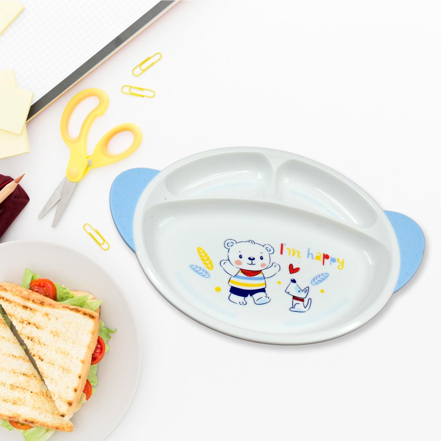 • Kids dining set is made up of high-quality bamboo fiber and plastic material, non-toxic, lightweight and easy to clean.