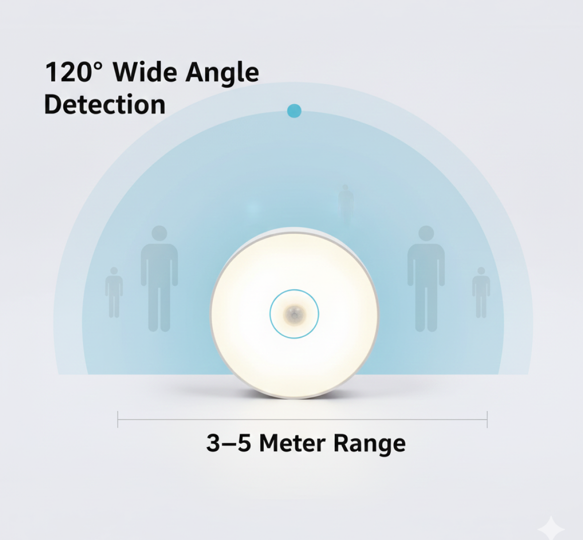 4. Human sensor: In the dark environment, when the human body enters the sensing range of 3m, the light is on and automatically turns off after leaving for 20s; The bright environment small night light will automatically enter the sleep state.