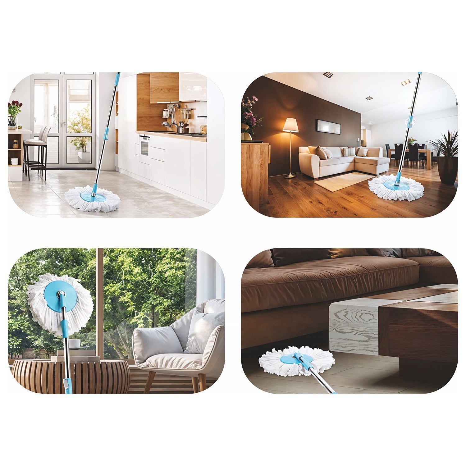 • 360° Rotating Mop Head: Compatible with most spin mop buckets for deep and flexible cleaning.