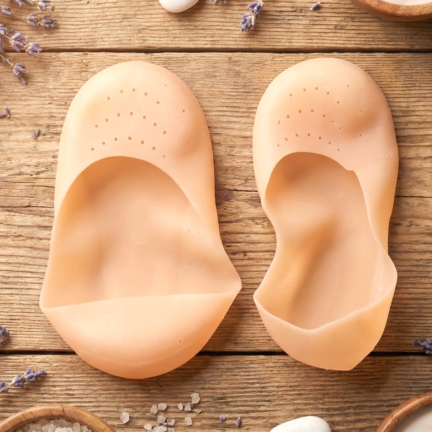This anti-crack silicone sock pair is designed to protect and support dry, rough, and cracked heels with comfortable foot care coverage. It works as a heel protector that helps reduce friction, prevent heel cracks, and improve overall heel comfort during daily use. The soft silicone design provides a snug fit and helps keep the heel area protected while walking, standing, or wearing footwear. These heel care socks are ideal for regular foot care routines and can be used at home, during travel, or while doing daily activities. A useful foot care accessory for anyone dealing with heel dryness and cracking.
