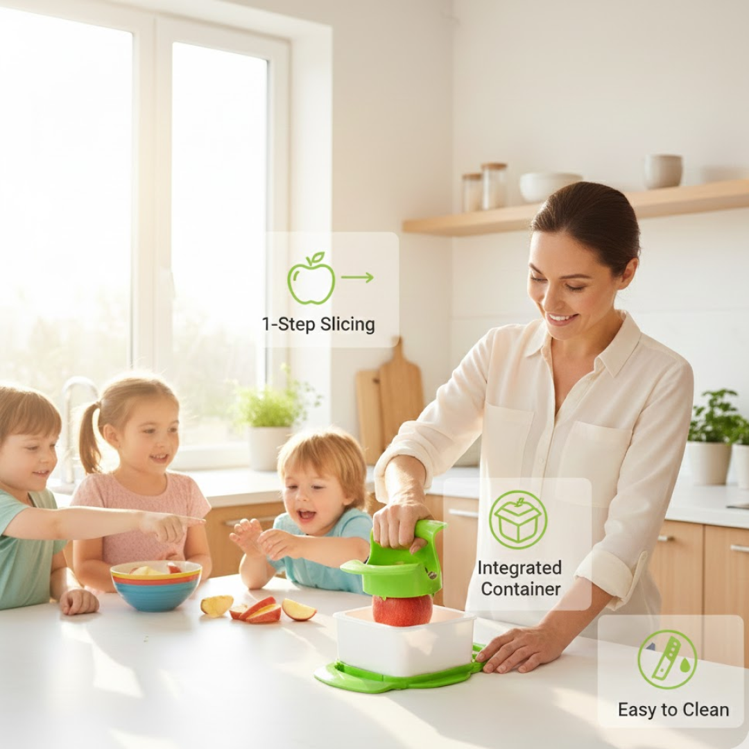 Simplify your fruit prep with this convenient and efficient Apple Cutter with Container, a must-have tool for every kitchen. Designed to make slicing apples fast, safe, and mess-free, this cutter delivers perfectly even slices in one swift motion—ideal for snacks, lunchboxes, and serving guests.