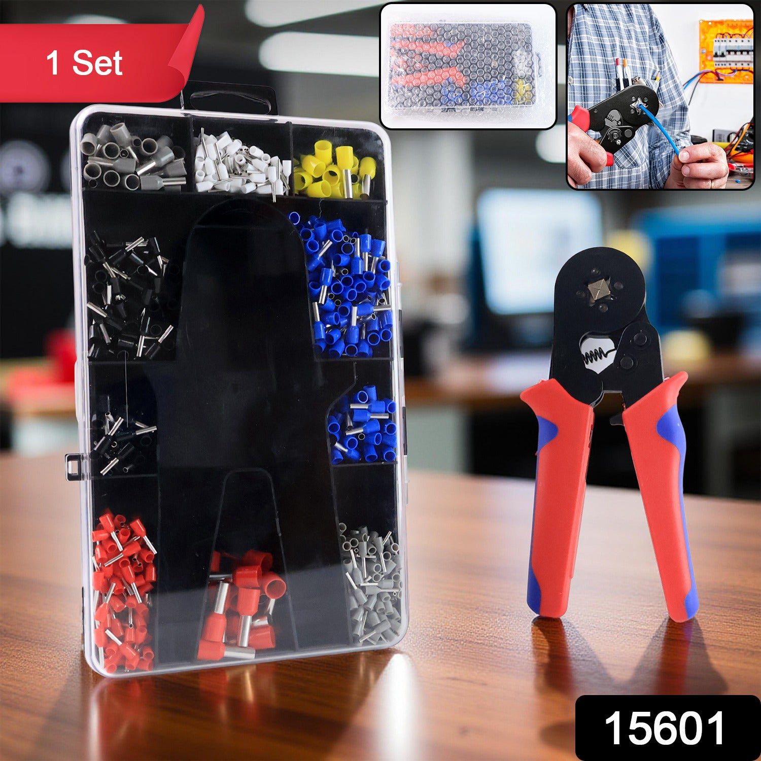 Complete kit includes approx. 1200 ferrule connectors and 1 high-quality ratcheting crimping plier