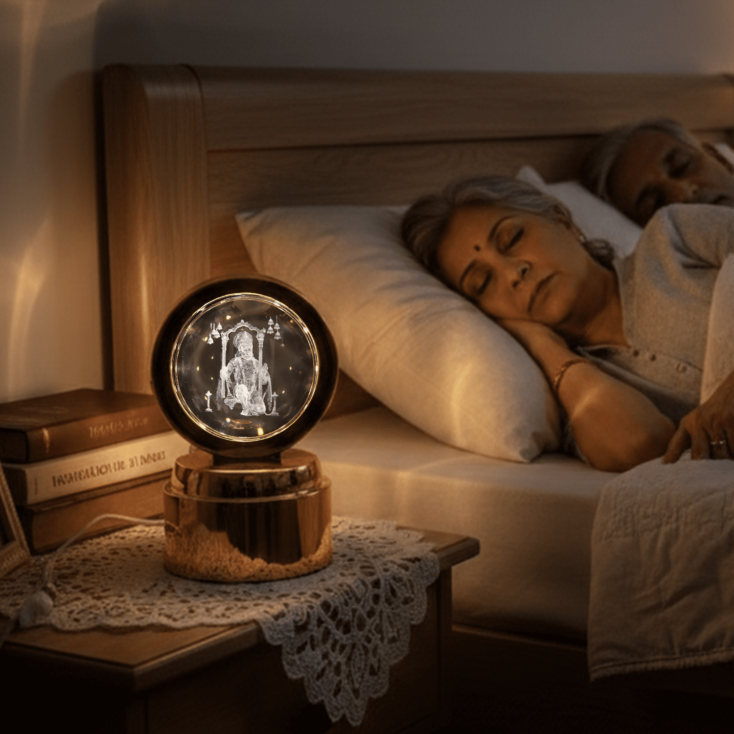 The soft LED light highlights the divine engraving and spreads a soothing glow, making it ideal for prayer areas, meditation corners, or calm bedside lighting. Designed to enhance both traditional and modern interiors, this spiritual décor piece adds grace and devotion to any setting while offering gentle illumination suitable for daily use.