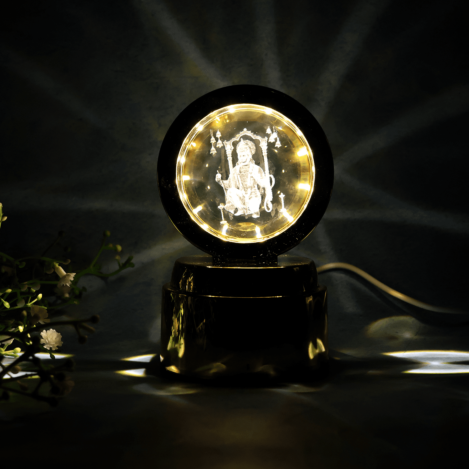 • 3D laser-engraved Bajrang Bali design inside crystal ball