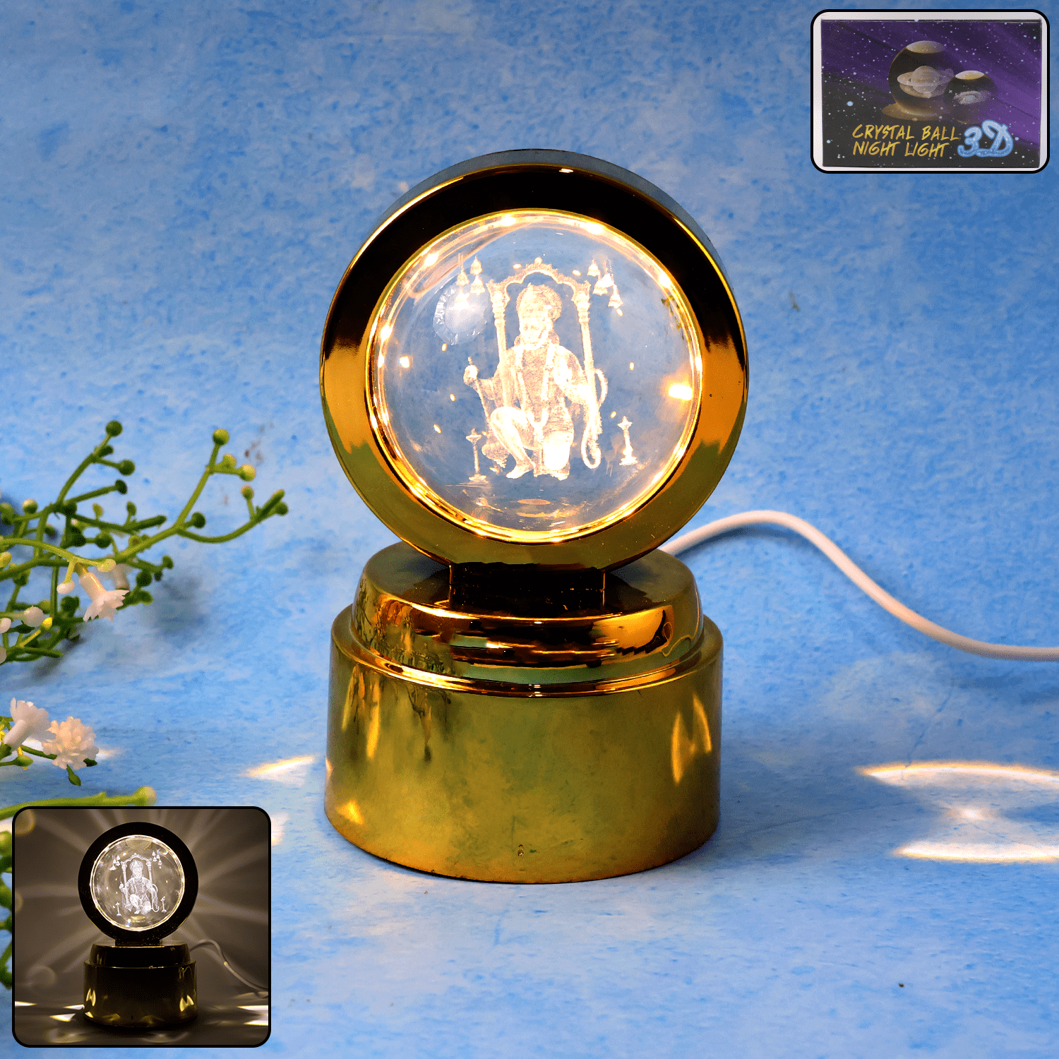 Bajrang Bali 3D Crystal Ball Night Light with LED Illumination (1 Pc)