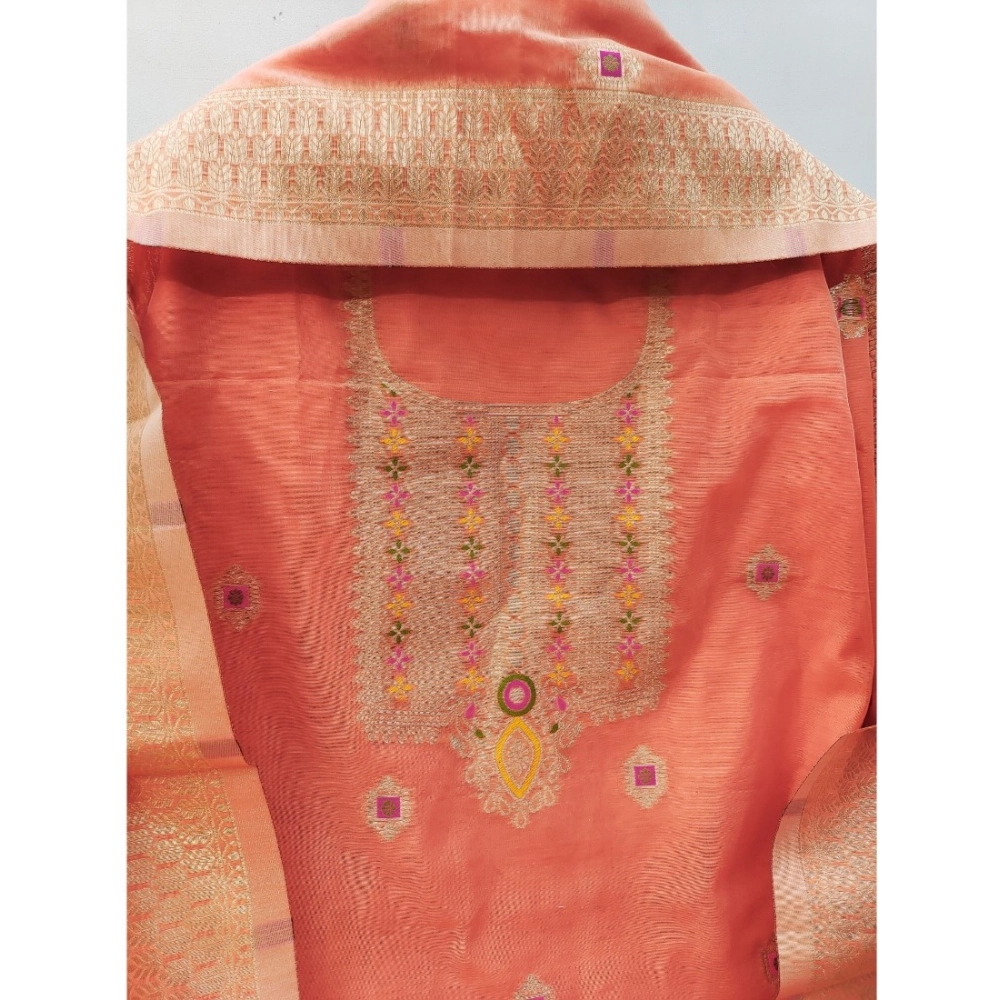 Premium Peach Banarasi Silk Printed Unstitched Salwar Suit Material with Dupatta for Women