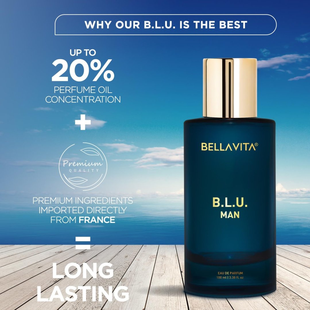 Bellavita Premium B.L.U. Man EAU DE Perfume 100 ML Luxury Collection Long Lasting Premium Fresh Aquatic Fragrance Spray for Men Office Party Evening Wear Signature Scent