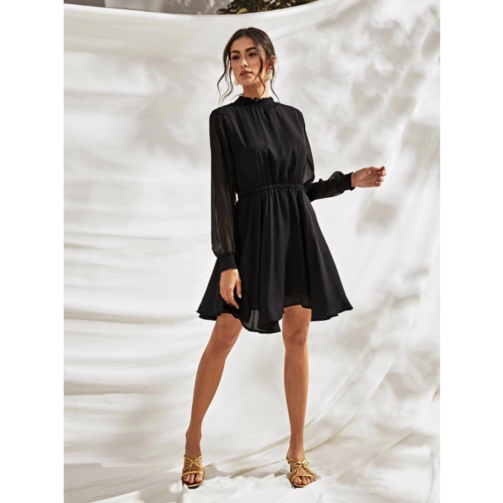 Elegant Black Georgette High Neck Full Sleeve Dress for Women