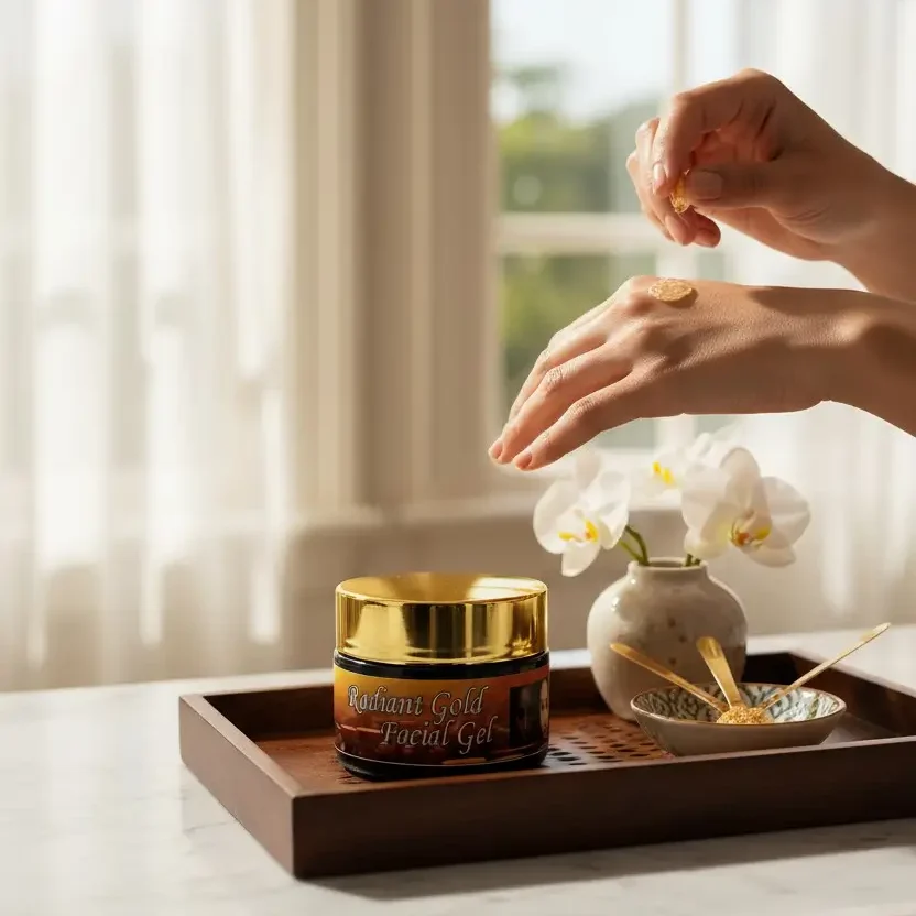 Experience salon-like glow at home with gold-infused Ayurvedic gel.