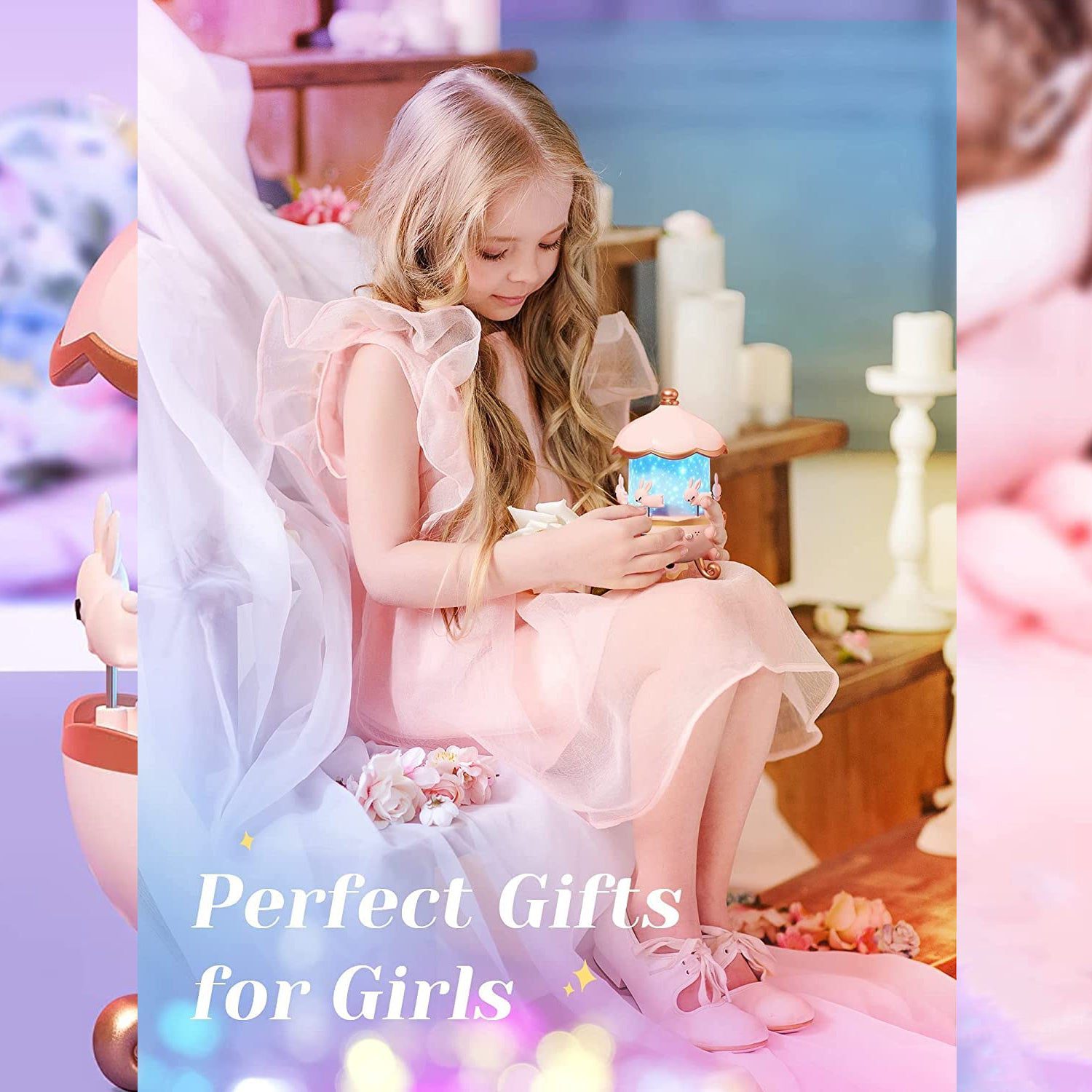 • Adorable bunny-themed carousel with LED projection