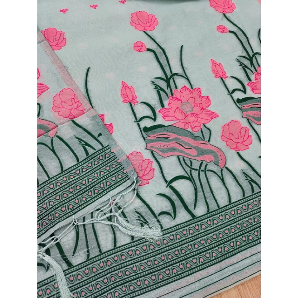 Premium Women’s Banarasi Silk Printed Unstitched Salwar Suit Material with Dupatta – Grey