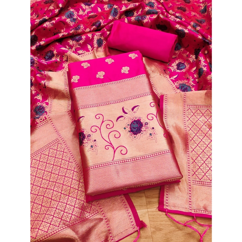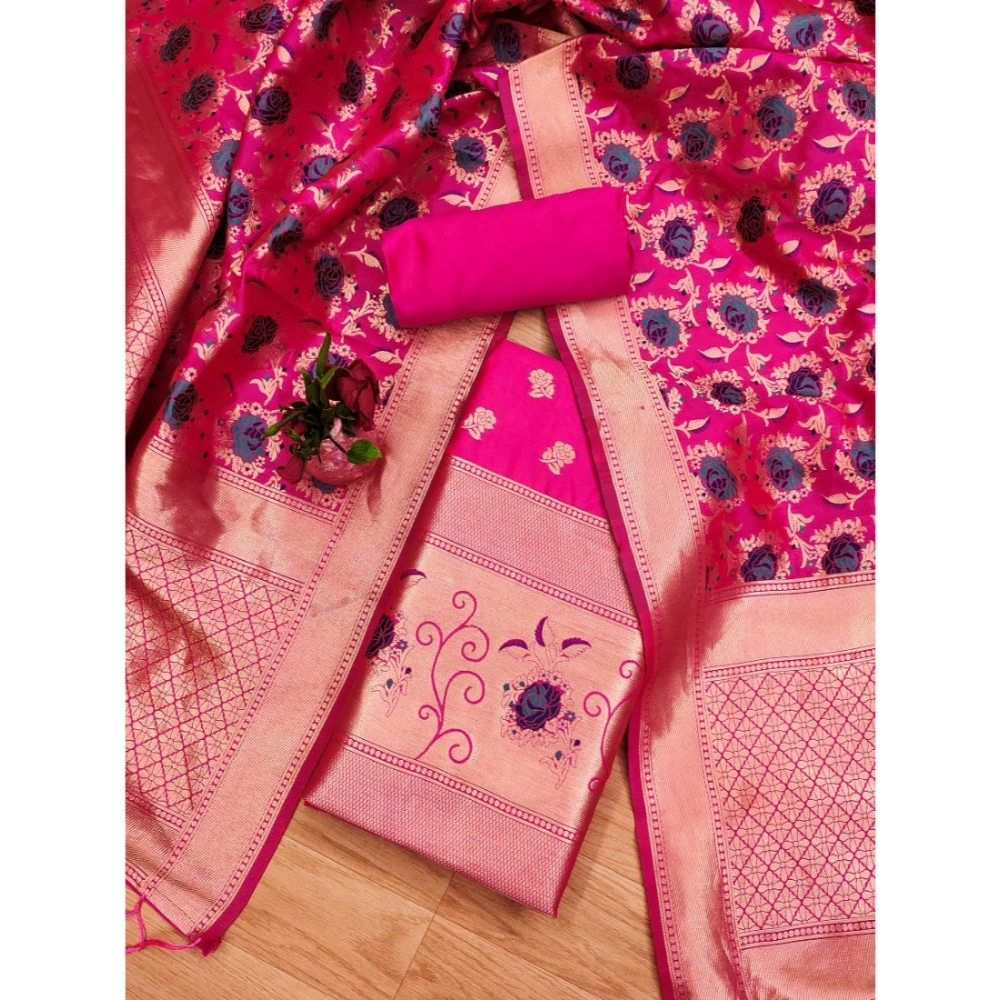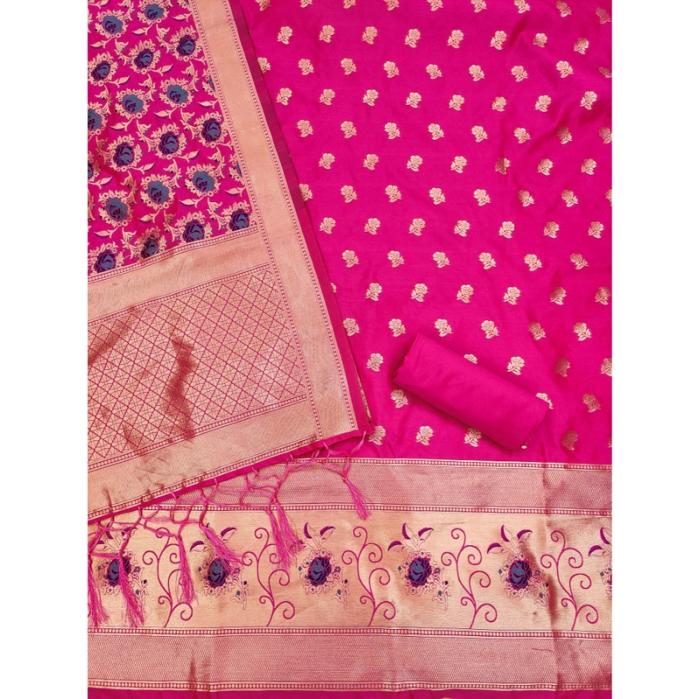 Elegant Women’s Banarasi Silk Printed Unstitched Salwar Suit Material with Dupatta – Rani Pink