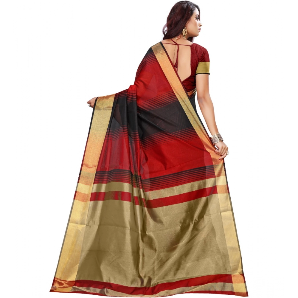 Elegant Red & Black Jacquard Woven Saree with Unstitched Blouse Piece