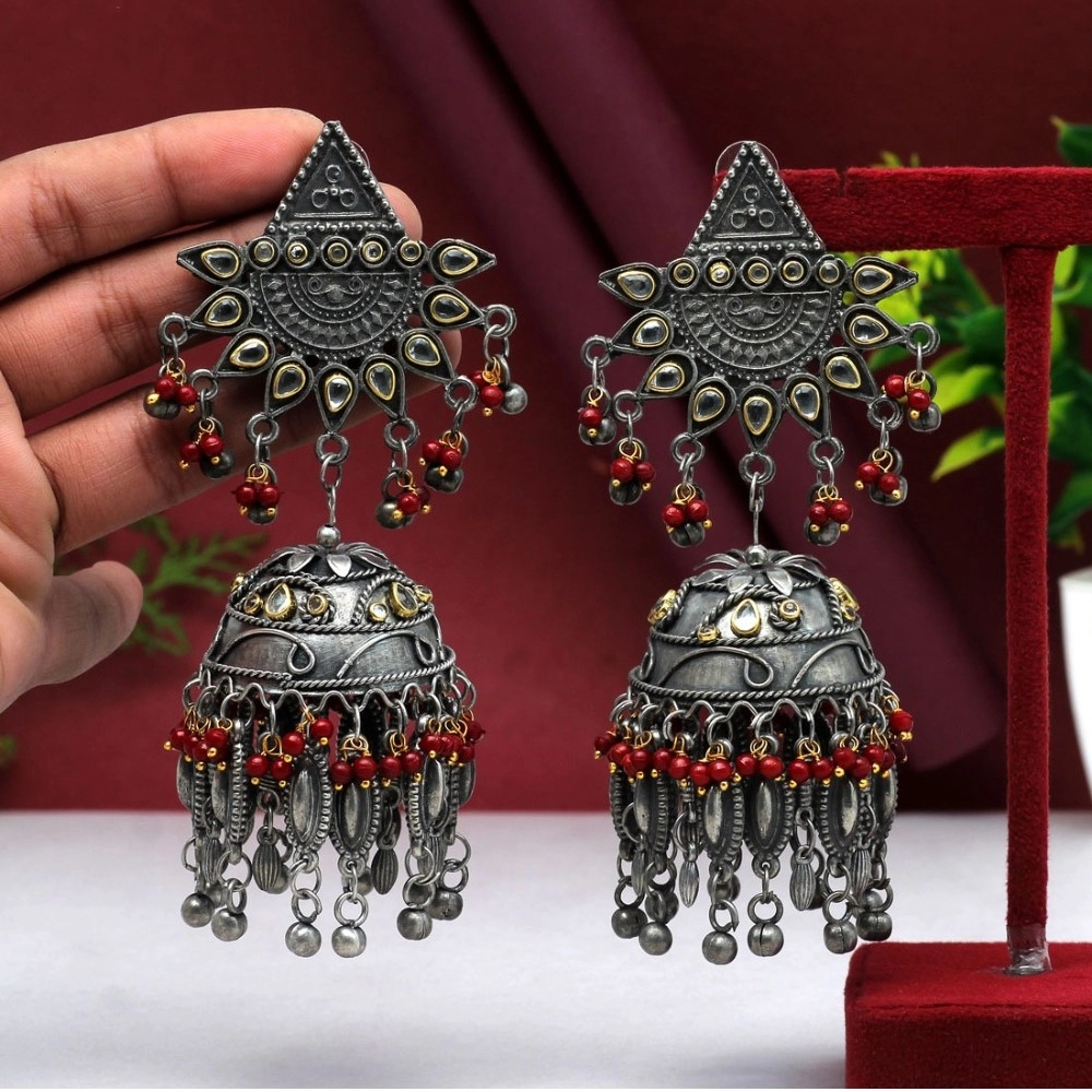 Stunning Maroon Oxidised Jhumka Earrings for Women – Buy Online at NariHaat