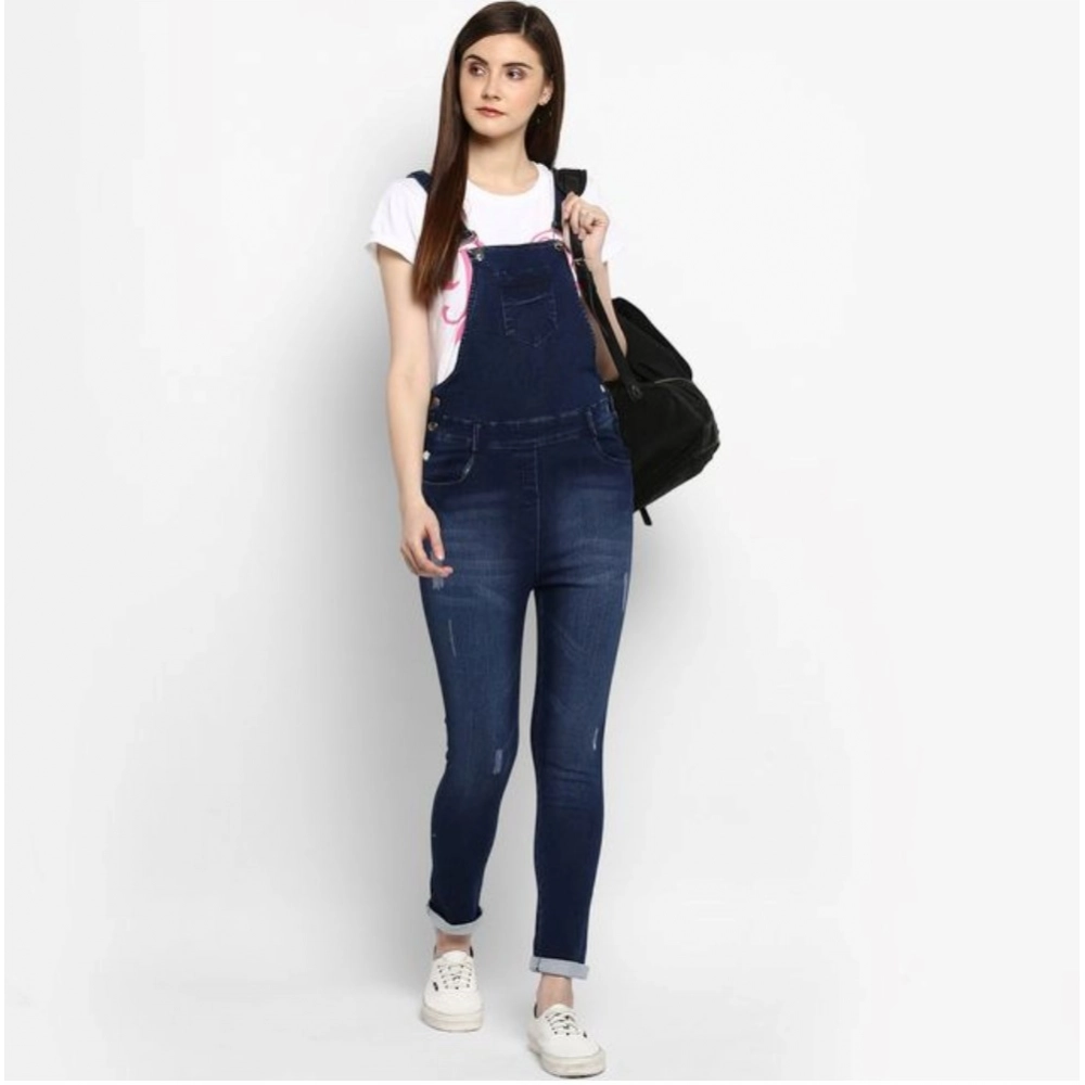 Stunning Blue Distressed Denim Dungaree for Women
