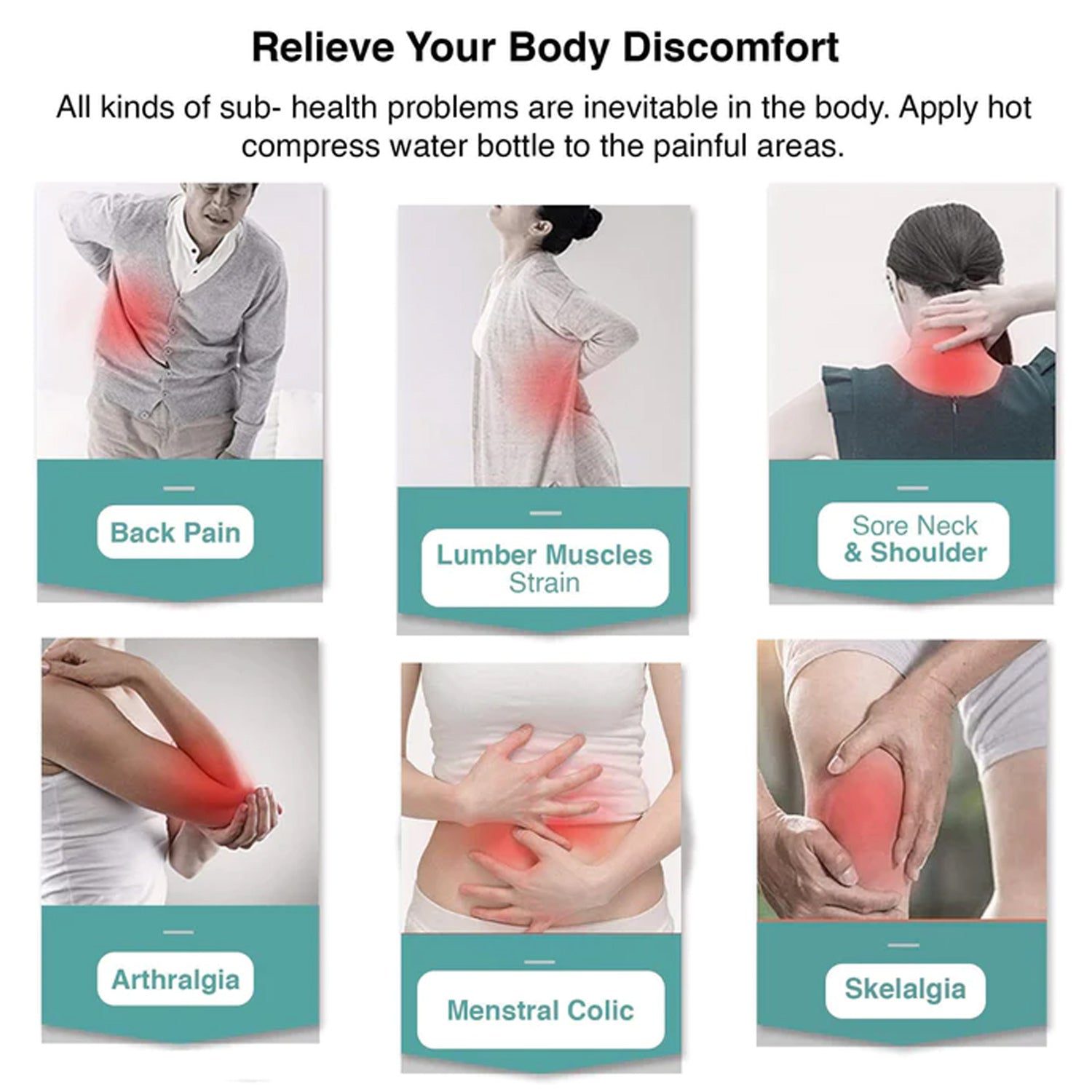 • Small hot water bag pain Relief. Warm bottle for hot water is best for sore muscles, stress, migraines, menstrual aches and cramps. The cover is soft, which protects you from excessive heat and makes your skin feel great.