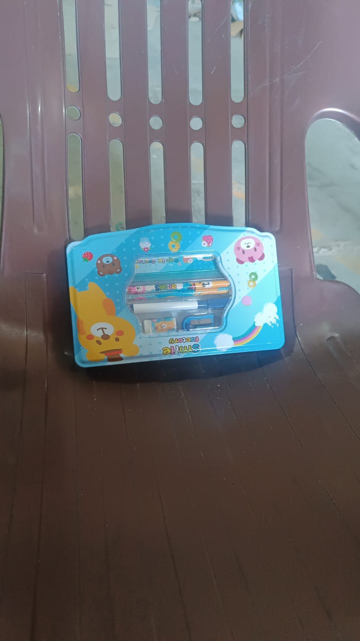 - ATTRACTIVE SHAPE : This Metal Pencil Box Provides Better Safeguarding To All Personal And Valuable Items With 1 Sharpner, 1 Pencil, 1 Eraser, 1 Scale, 1 Marker